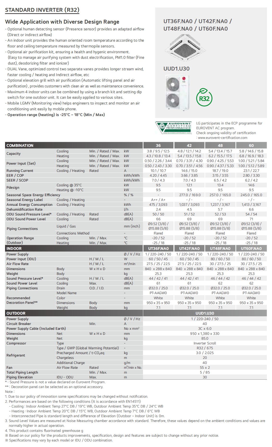 LG Ceiling Cassette UT42F+UUD3 3Phase Standard Inverter