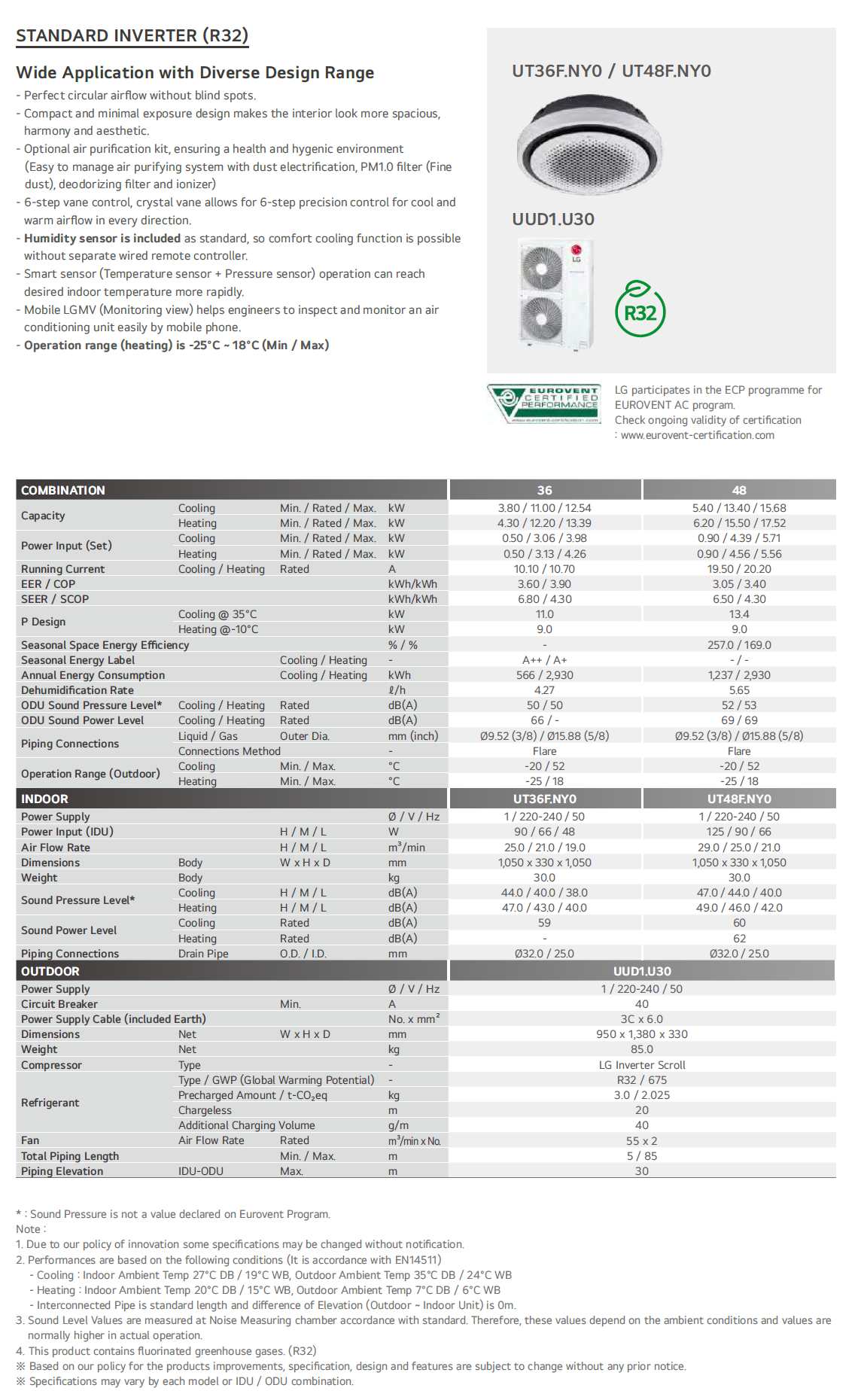 LG Round Ceiling Cassette UT48F.NY0+UUD1 1Phase Standard Inverter